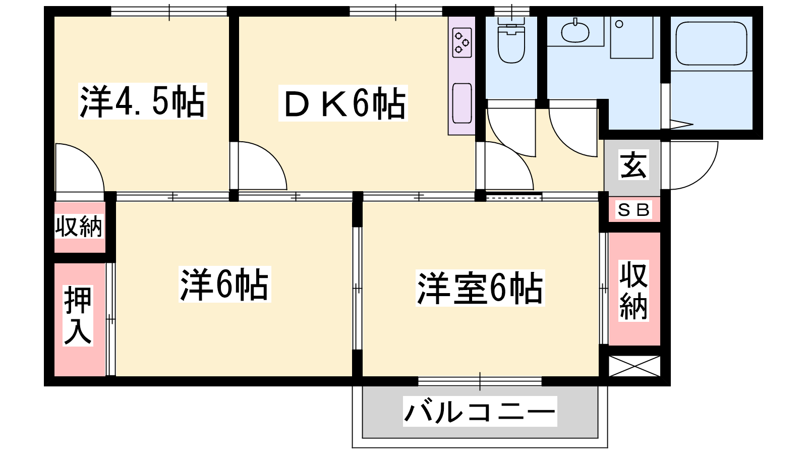- DK6帖、洋室6帖、洋室6帖、洋室4.5帖