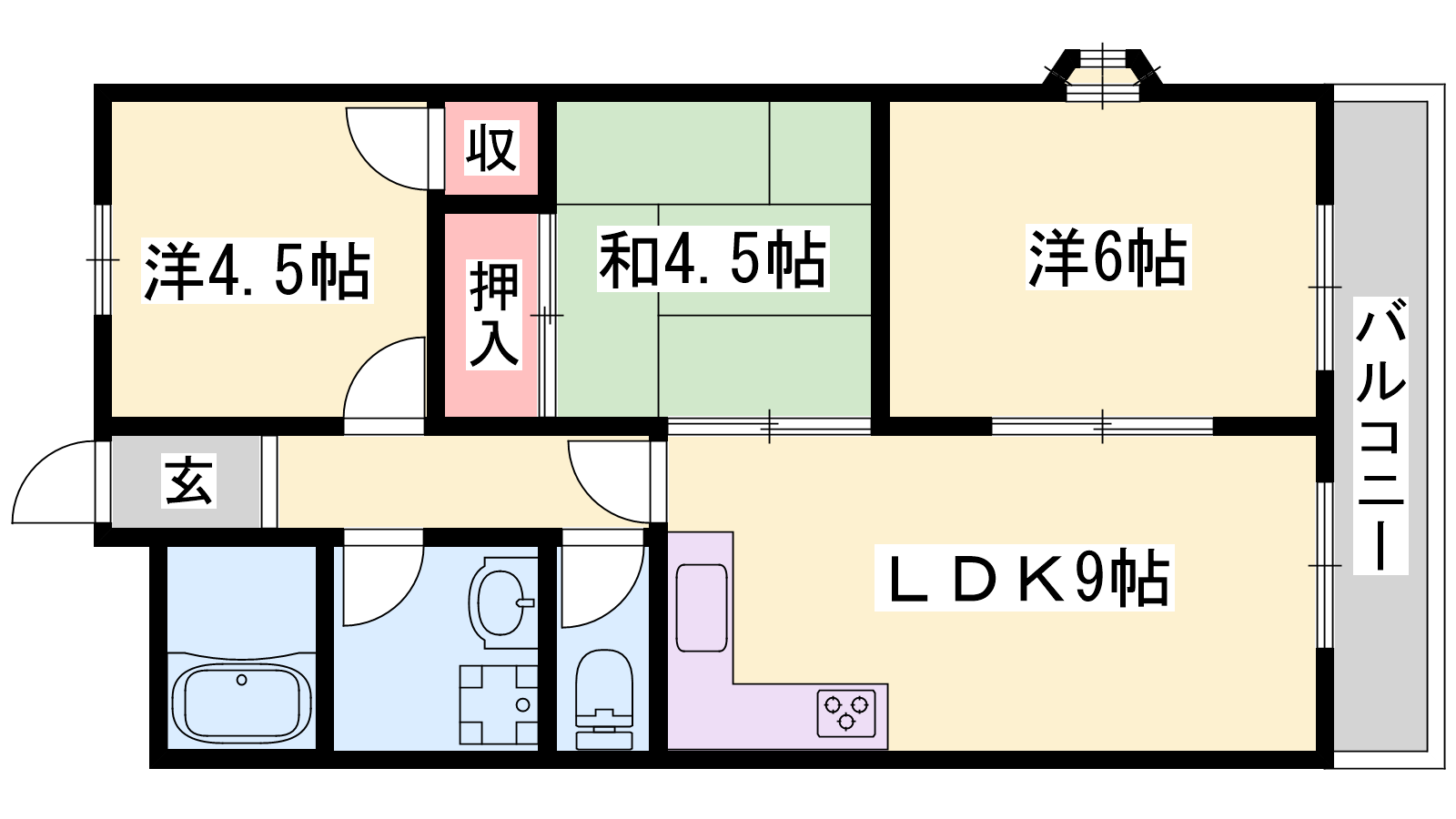 - LDK9帖、洋室6帖、洋室4.5帖、和室4.5帖