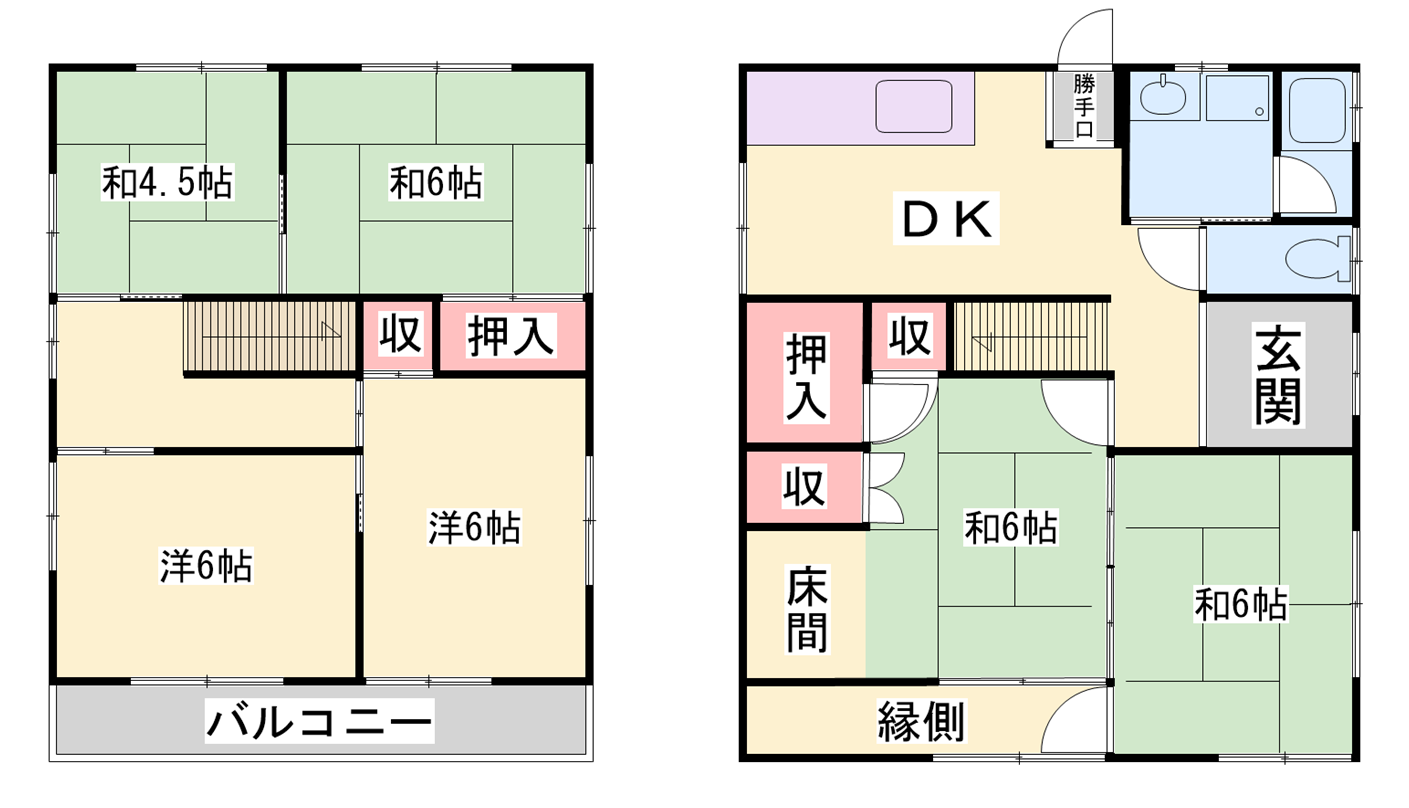 - 洋室6帖、洋室6帖、和室6帖、和室6帖、和室6帖、和室4.5帖