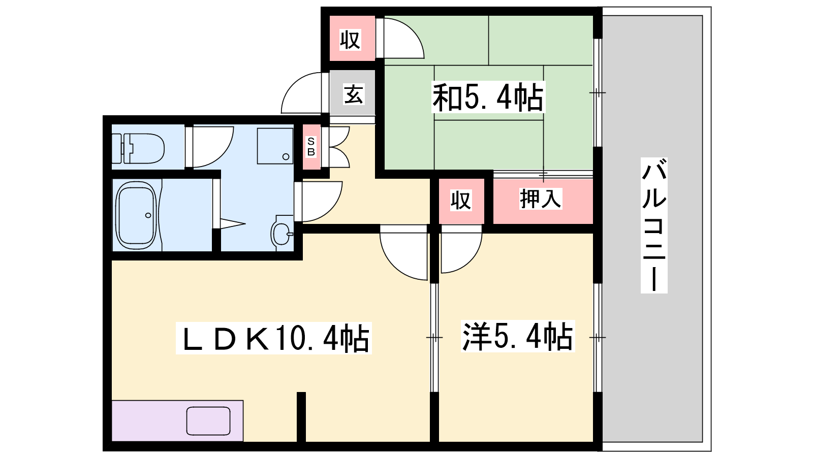 - LDK10.4帖、洋室5.4帖、和室5.4帖