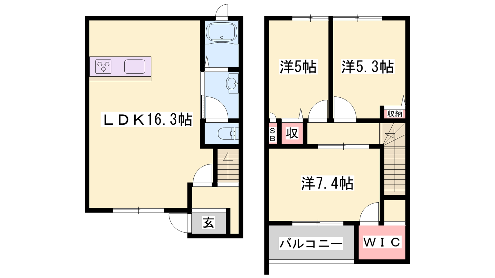 - LDK16.3帖、洋室7.4帖、洋室5.3帖、洋室5帖