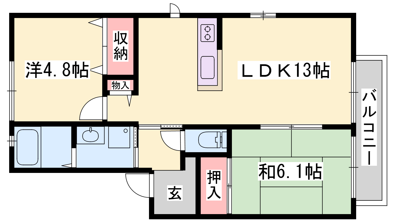 - LDK13帖、和室6.1帖、洋室4.8帖