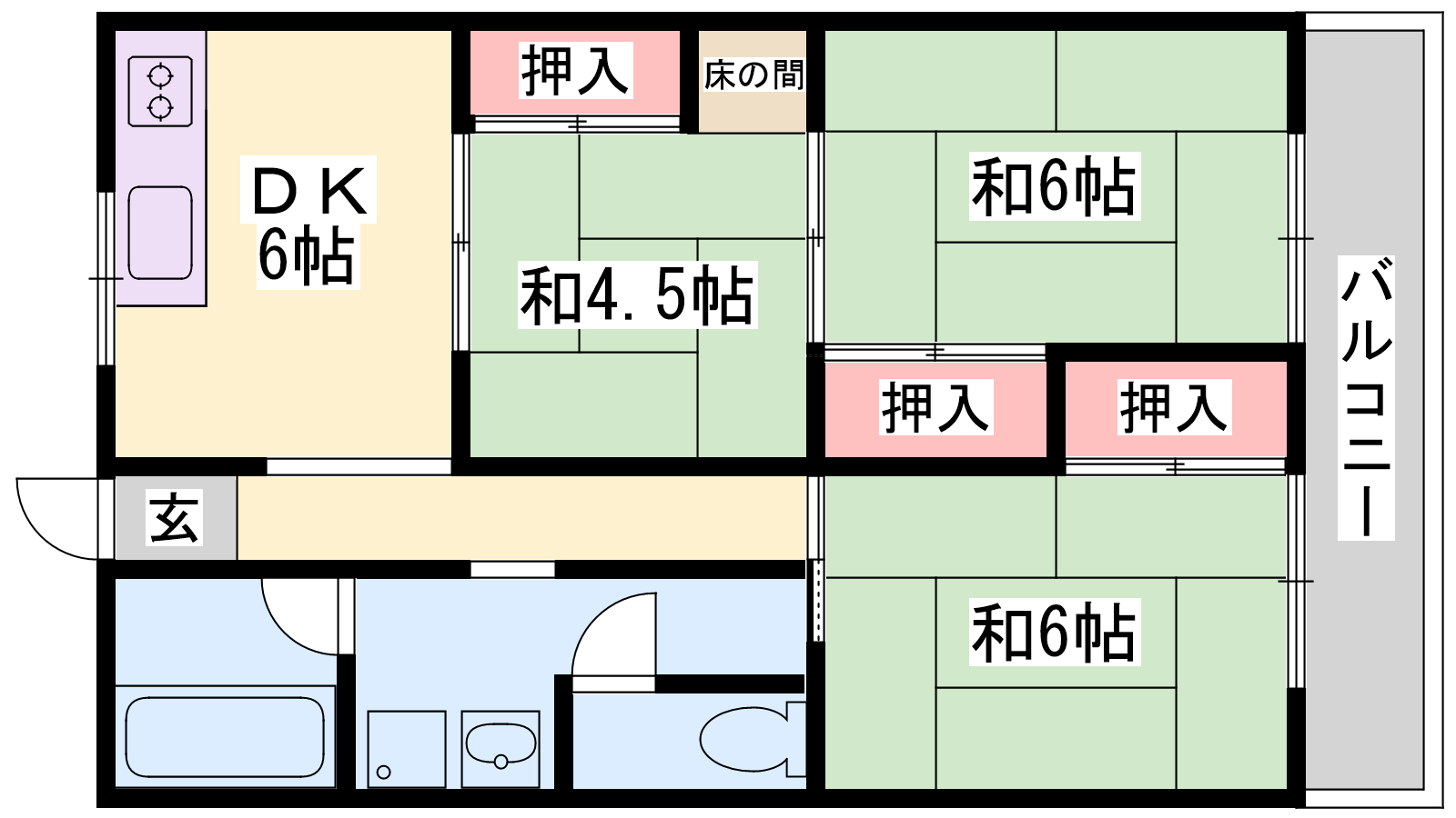 - DK6帖、和室6帖、和室6帖、和室4.5帖