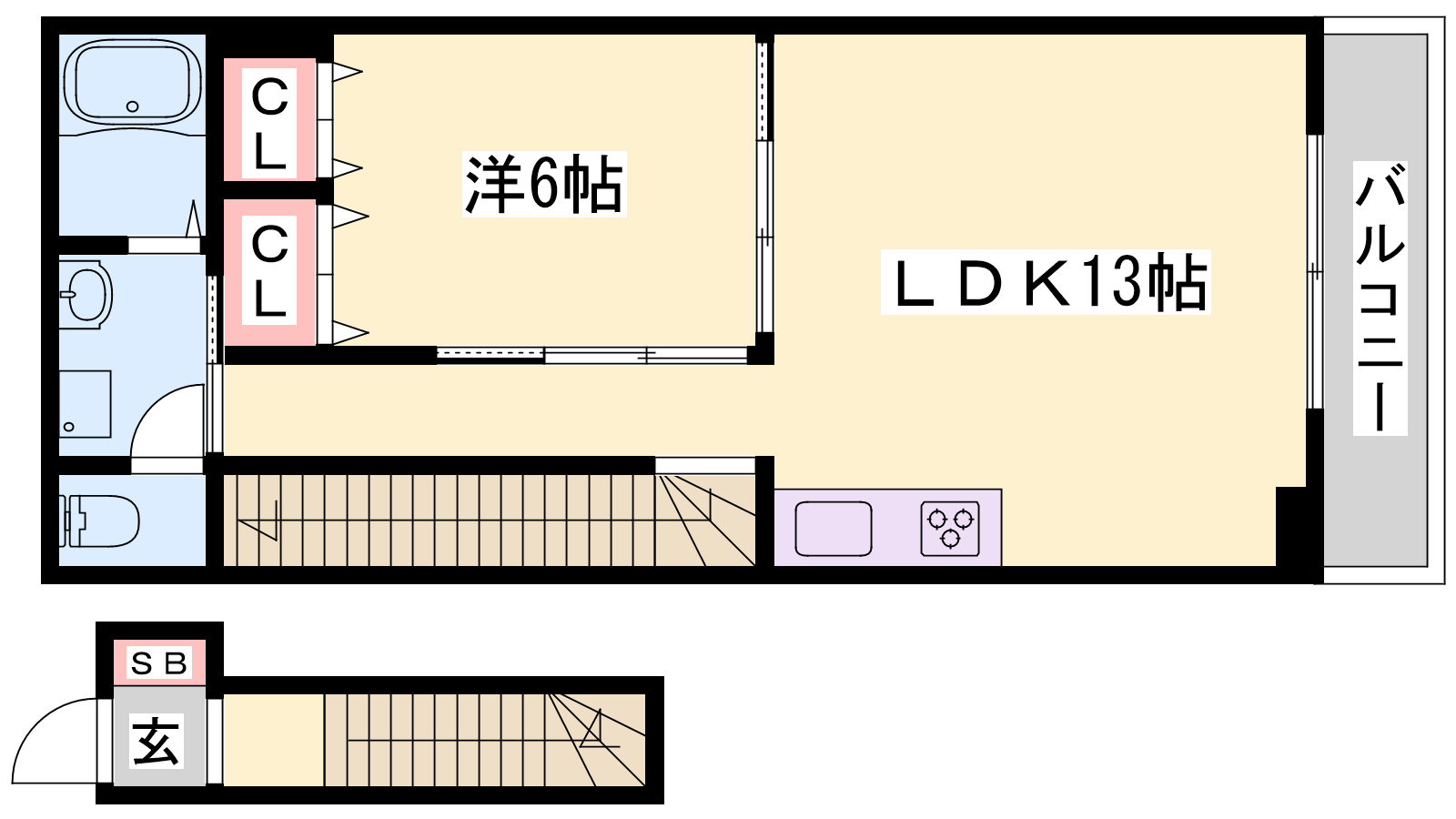 - LDK13帖、洋室6帖