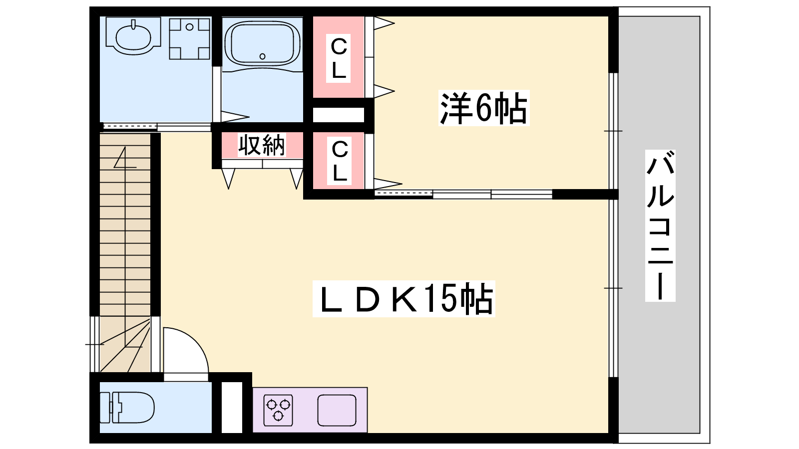 - LDK15帖、洋室6帖