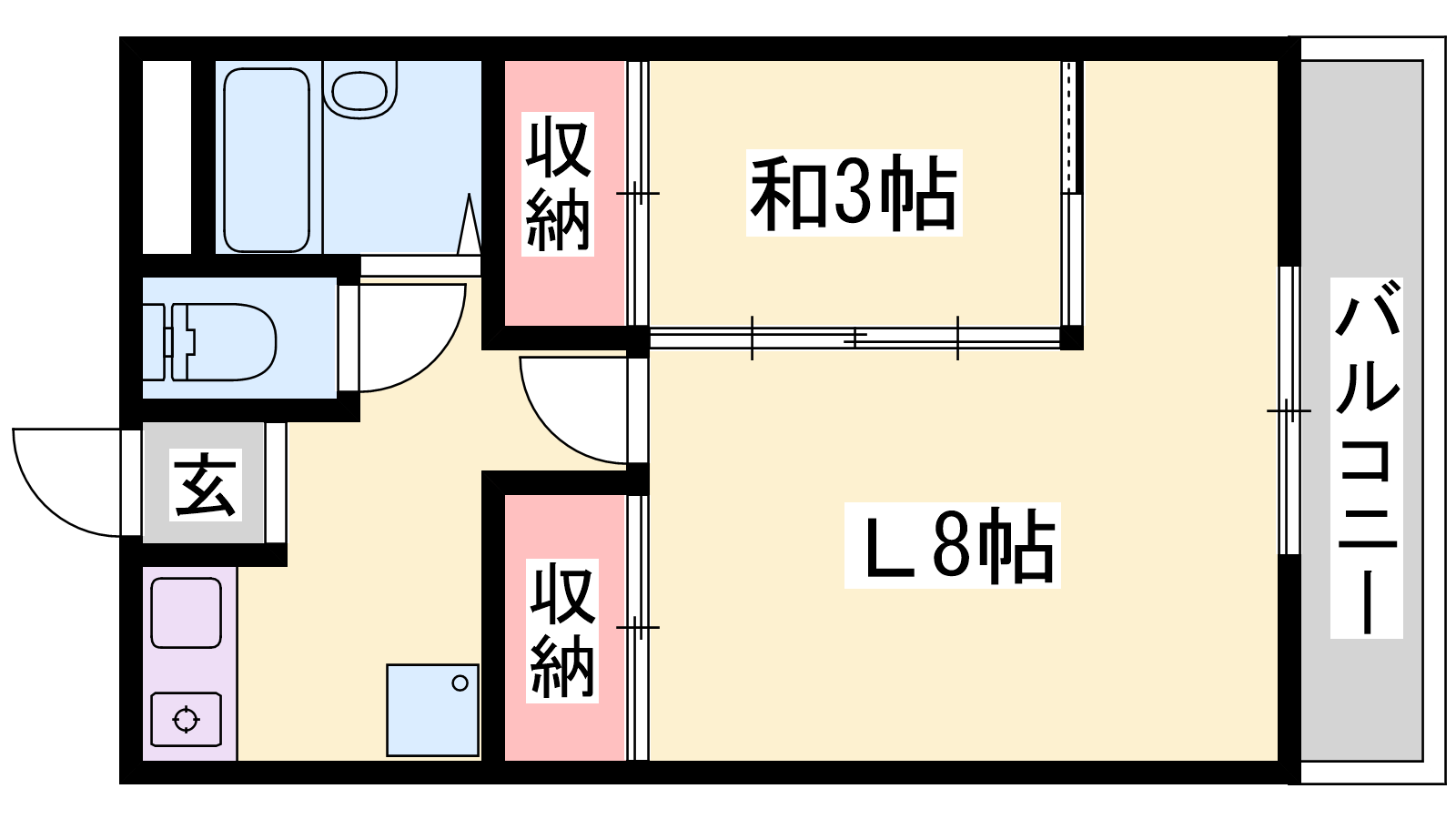 - LDK8帖、洋室3帖