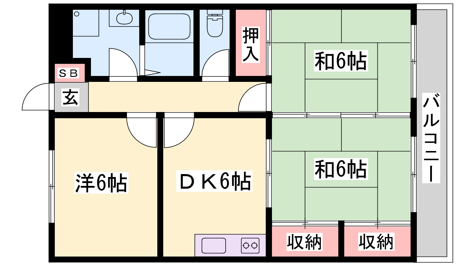 - DK6帖、洋室6帖、和室6帖、和室6帖