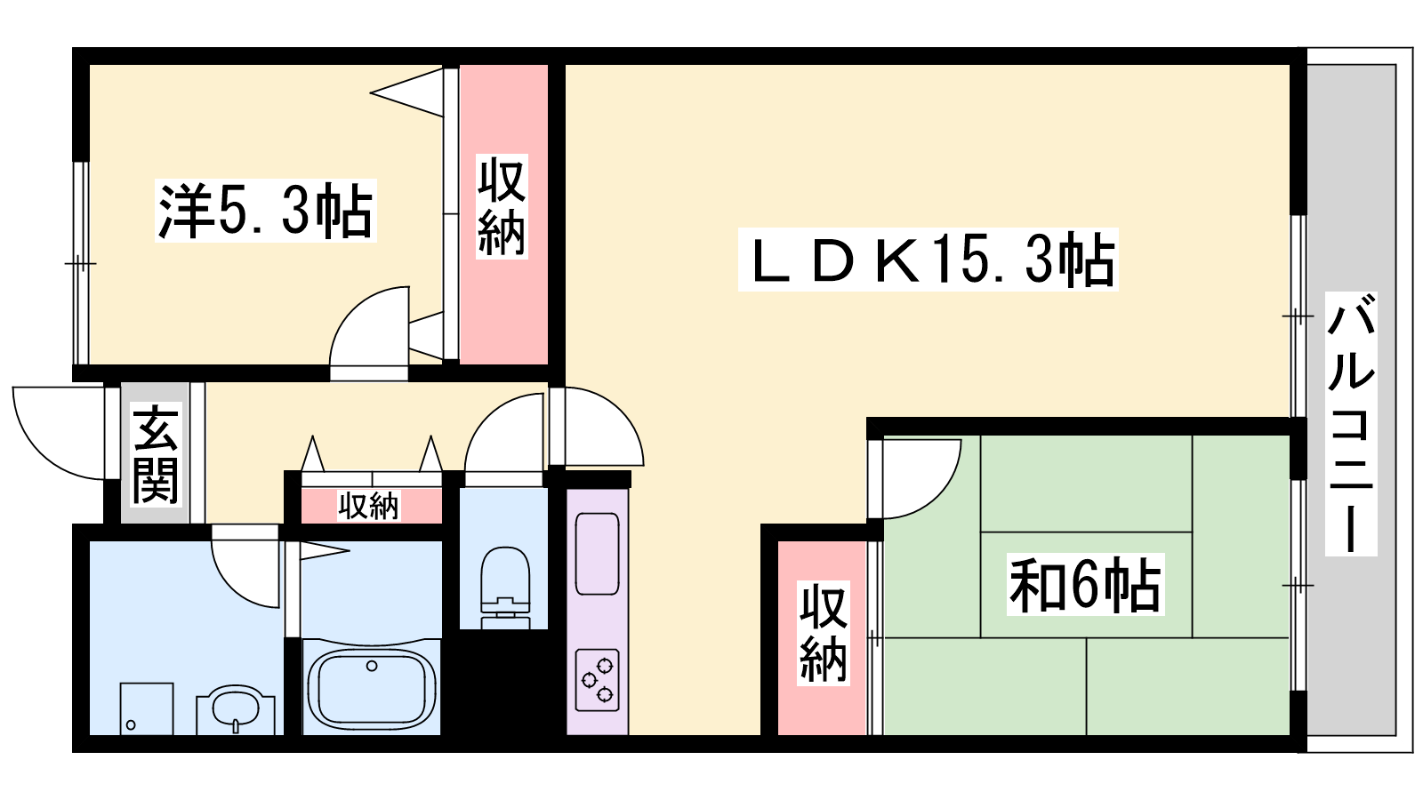 - LDK15.3帖、洋室5.3帖、和室6帖