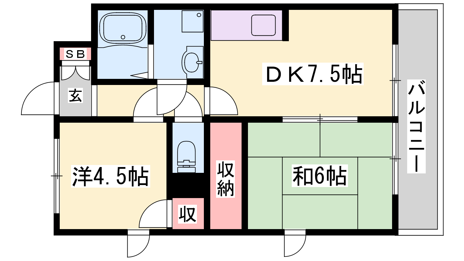 - DK7.5帖、洋室4.5帖、和室6帖