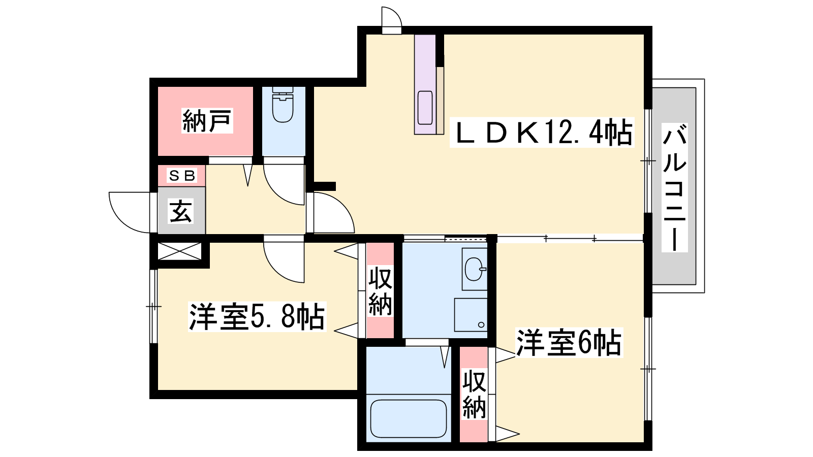 - LDK12.4帖、洋室6帖、洋室5.8帖
