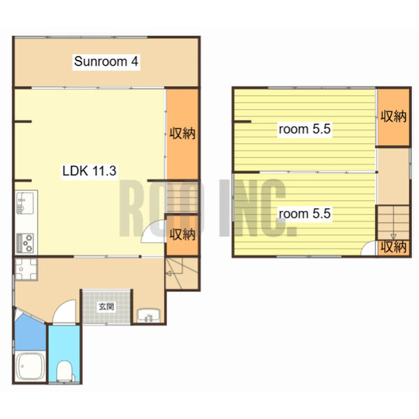 - LDK11.3帖、洋室5.5帖、洋室5.5帖