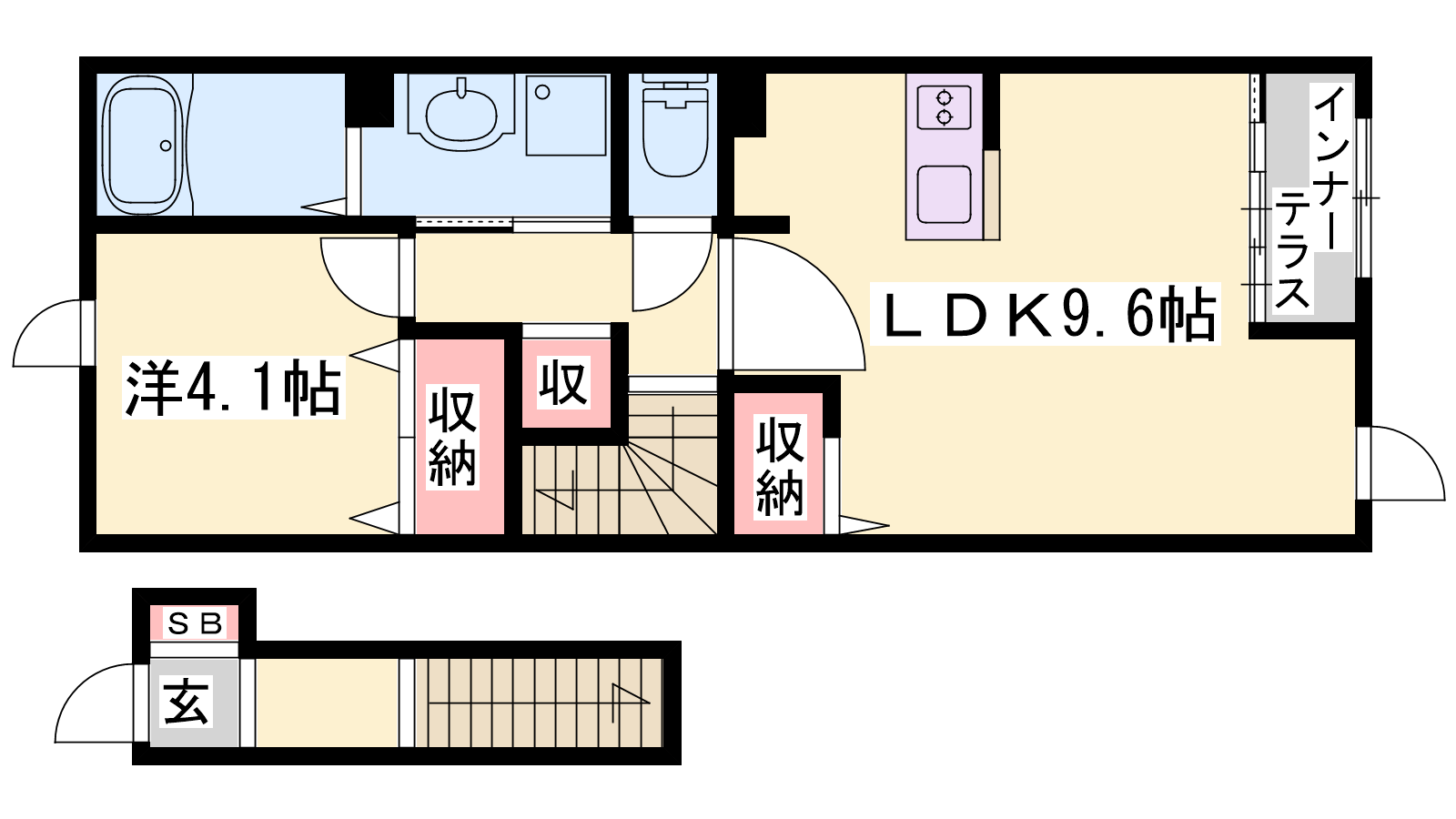 - LDK9.6帖、洋室4.1帖