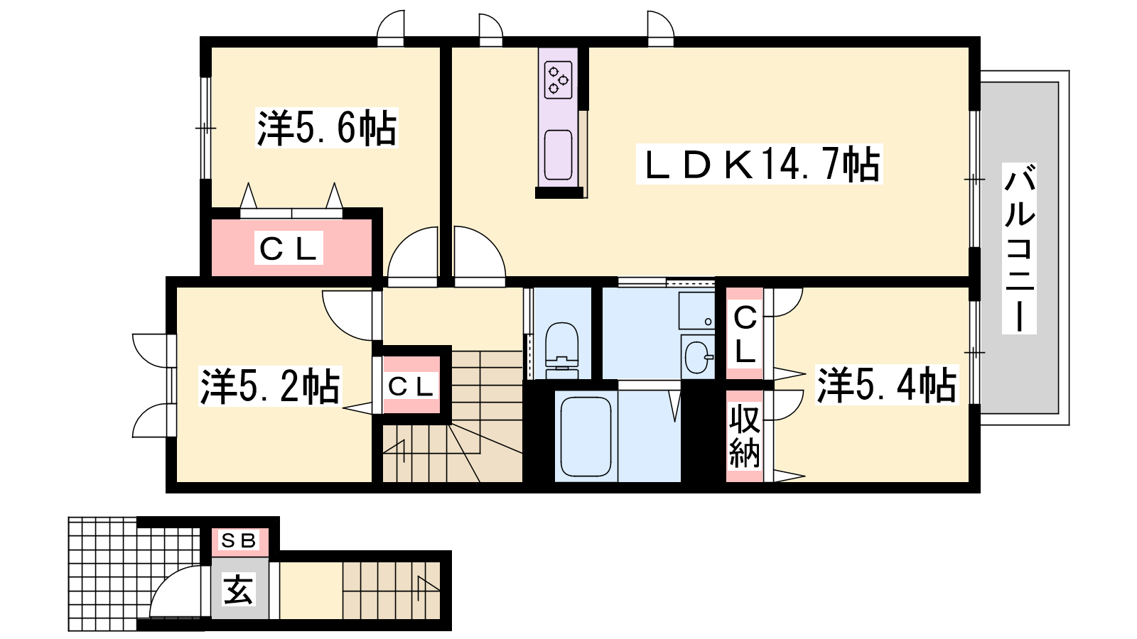 - LDK14.7帖、洋室5.6帖、洋室5.4帖、洋室5.2帖