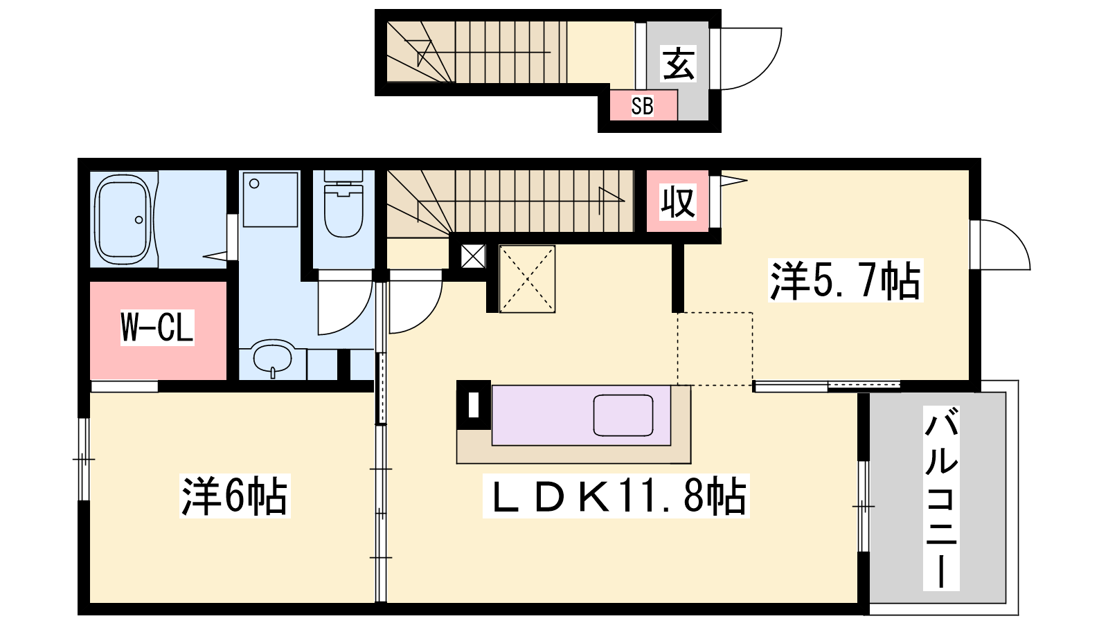 - LDK11.8帖、洋室6帖、洋室5.7帖