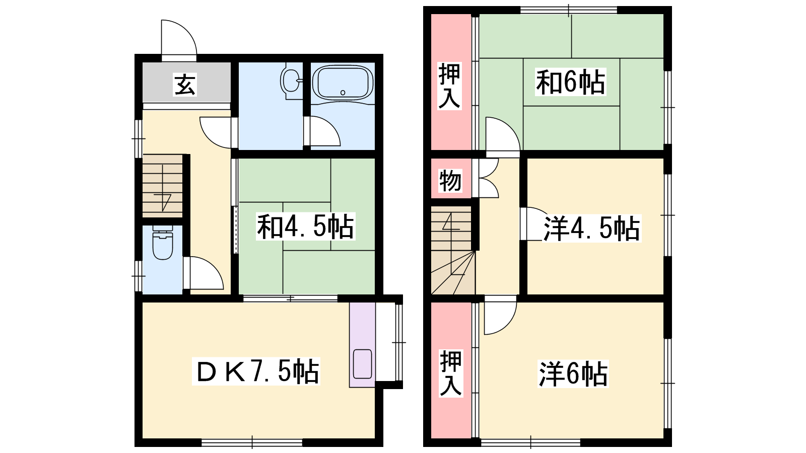 - DK7.5帖、洋室6帖、洋室4.5帖、和室6帖、和室4.5帖