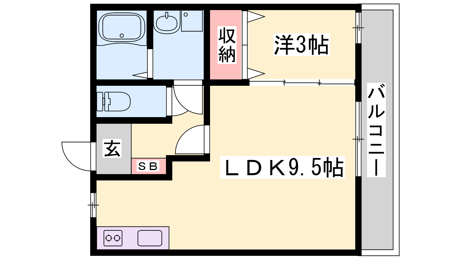 - LDK9.5帖、洋室3帖