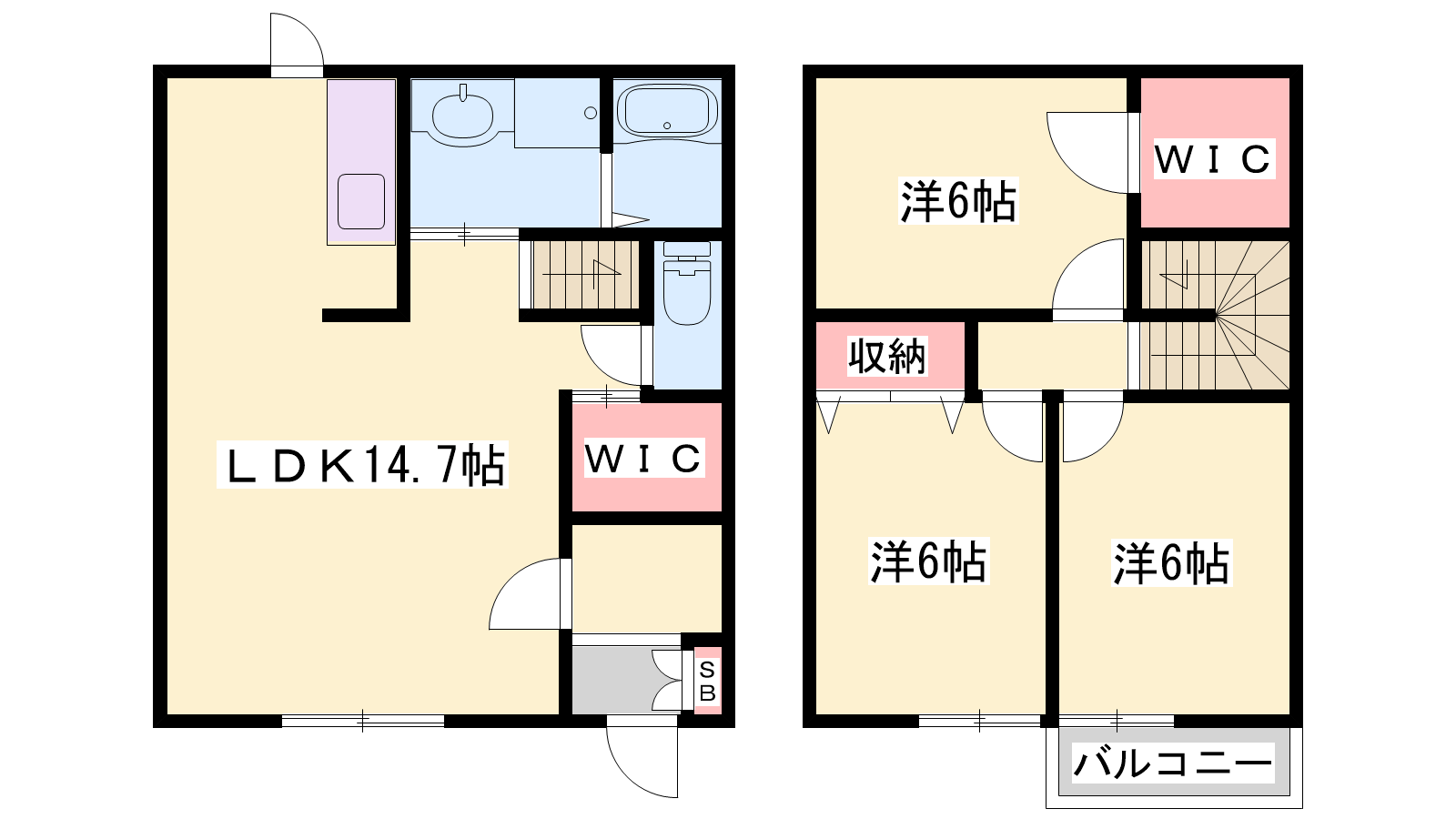 - LDK14.7帖、洋室6帖、洋室6帖、洋室6帖