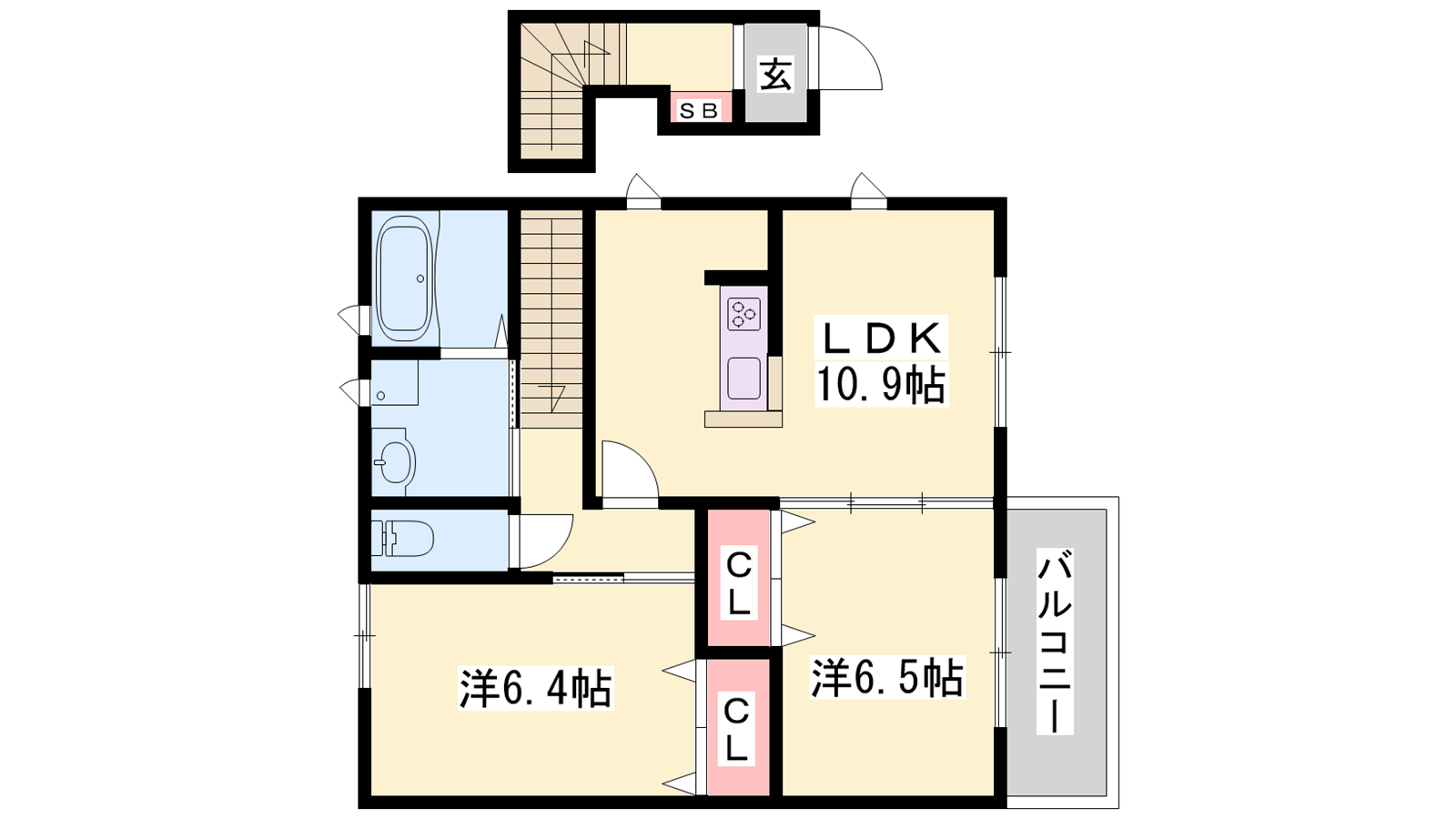 - LDK10.9帖、洋室6.4帖、洋室6.5帖