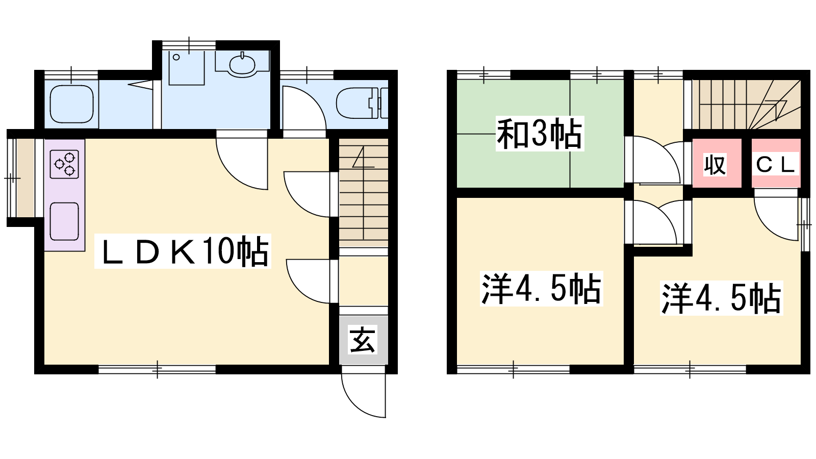 - LDK10帖、洋室4.5帖、洋室4帖、和室3帖