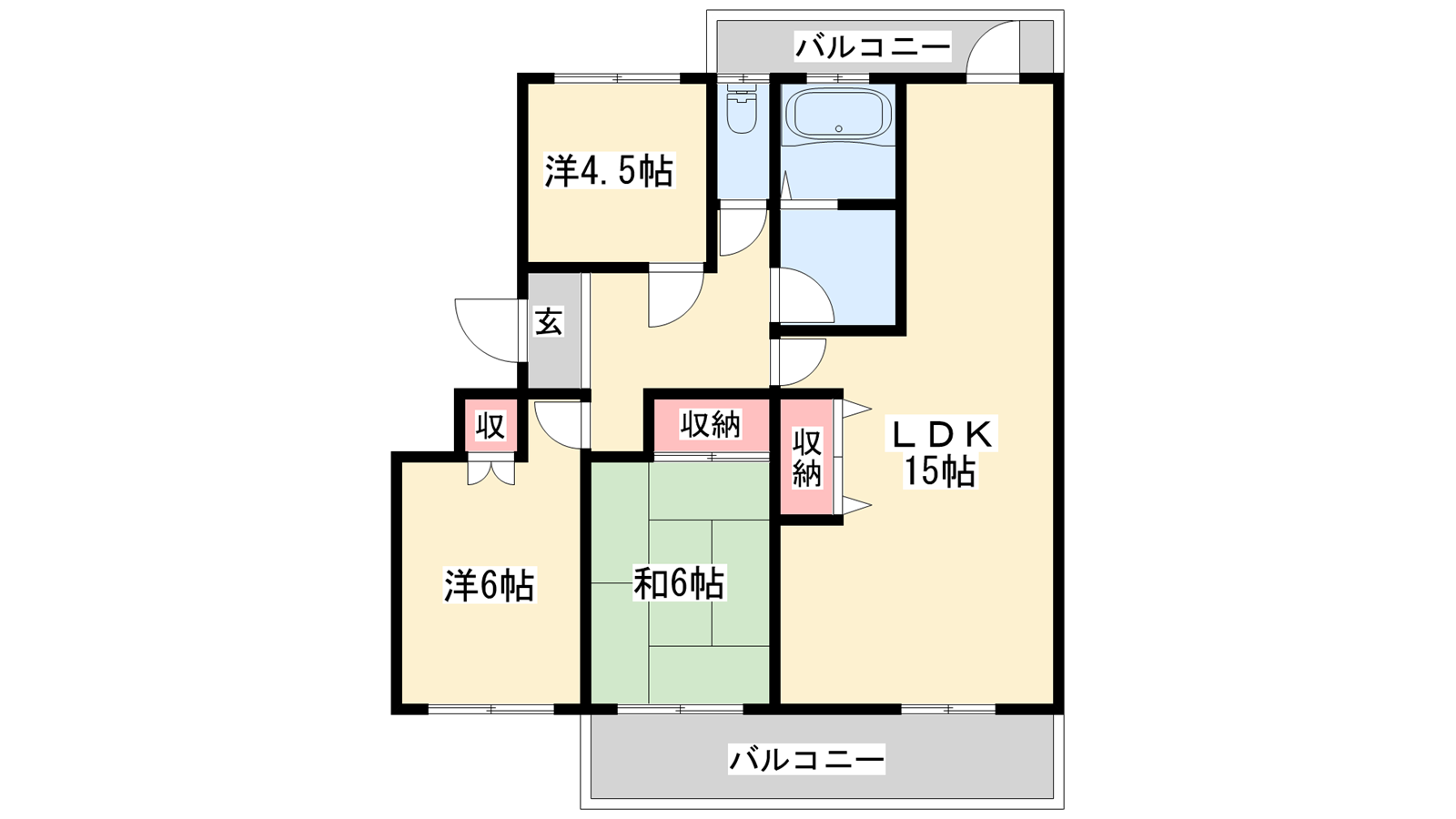 - LDK15帖、洋室6帖、洋室4.5帖、和室6帖