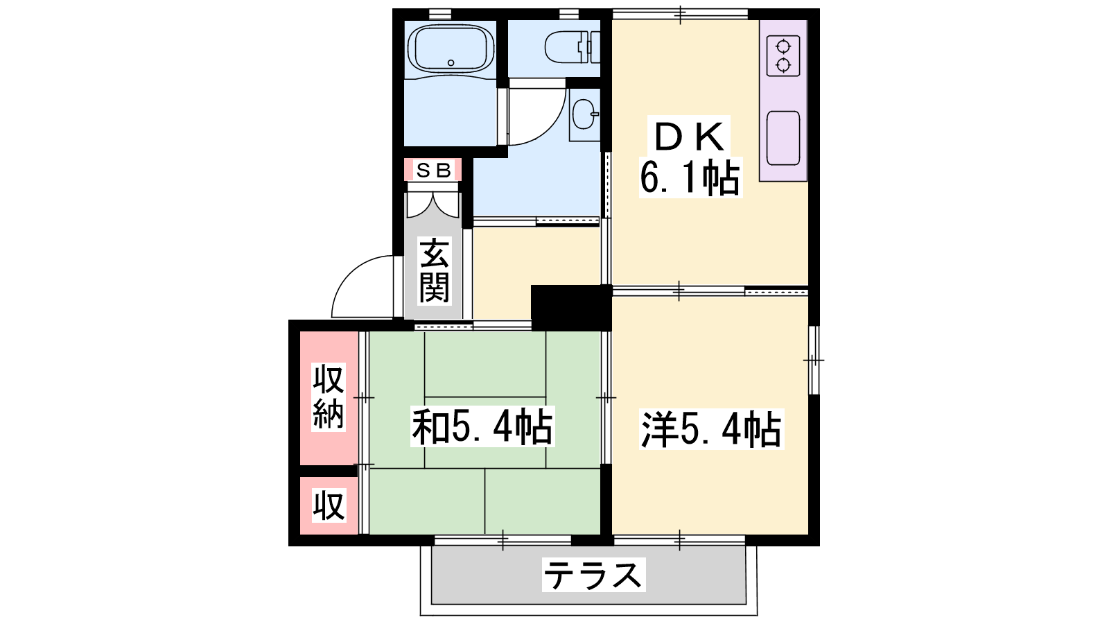 - DK6.1帖、和室5.4帖、洋室5.4帖