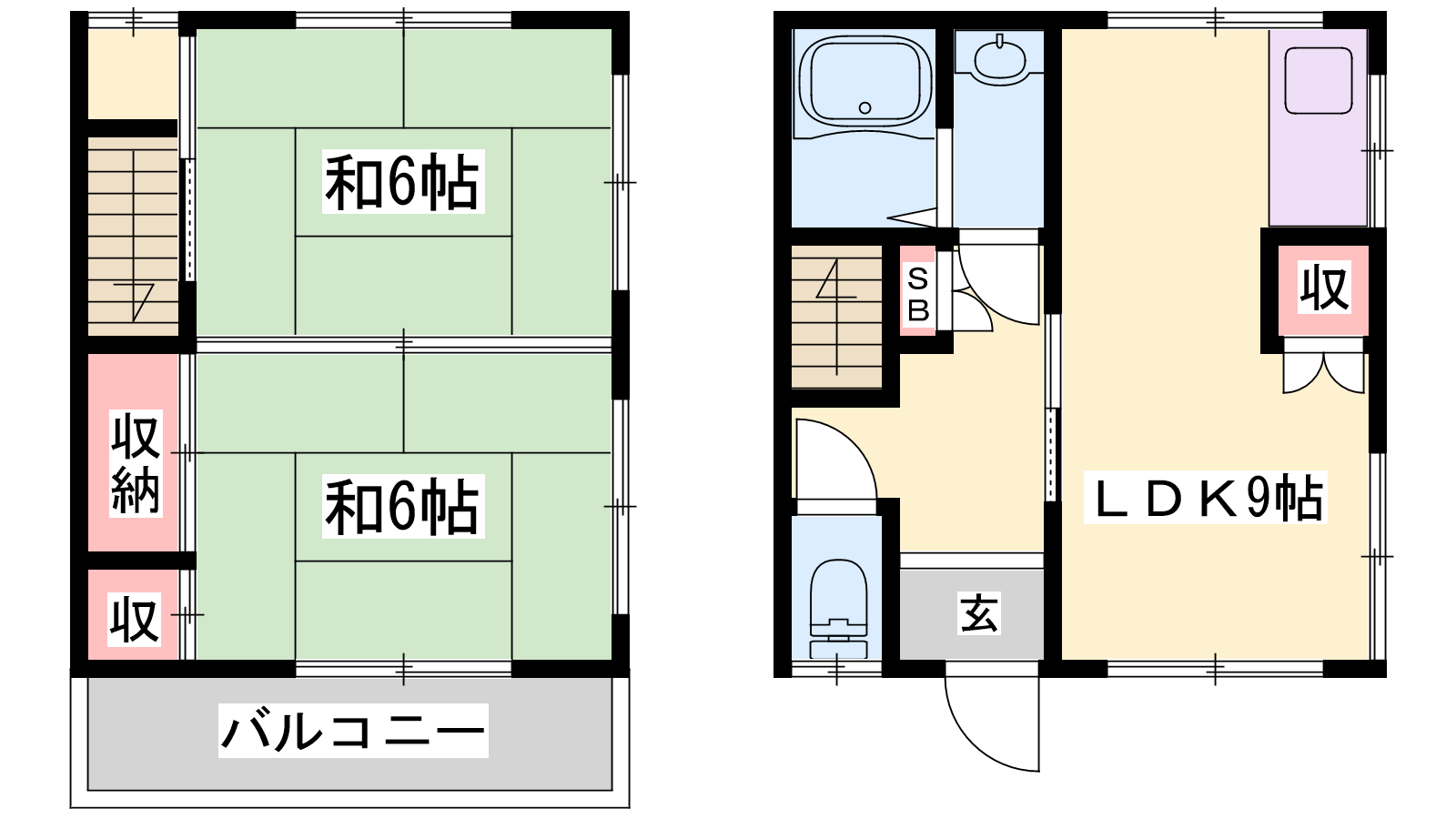 - LDK9帖、和室6帖、和室6帖