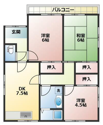 - DK7.5帖、洋室6帖、洋室4.5帖、和室6帖