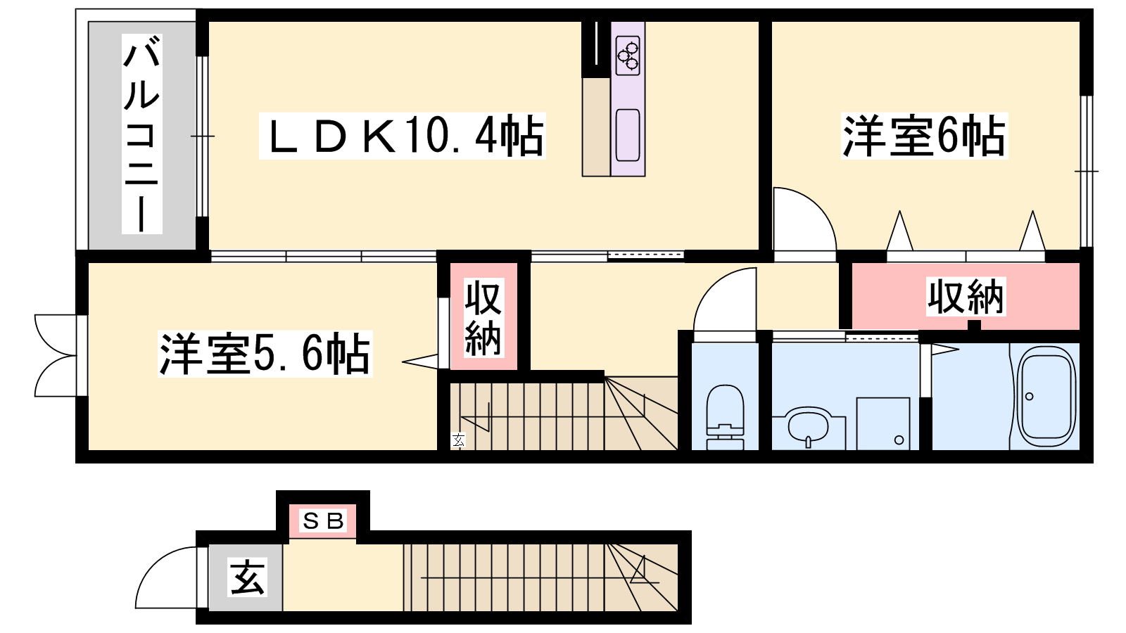 - LDK10.4帖、洋室6帖、洋室5.6帖