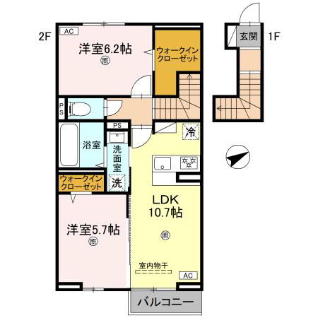 - LDK10.7帖、洋室6.2帖、洋室5.7帖