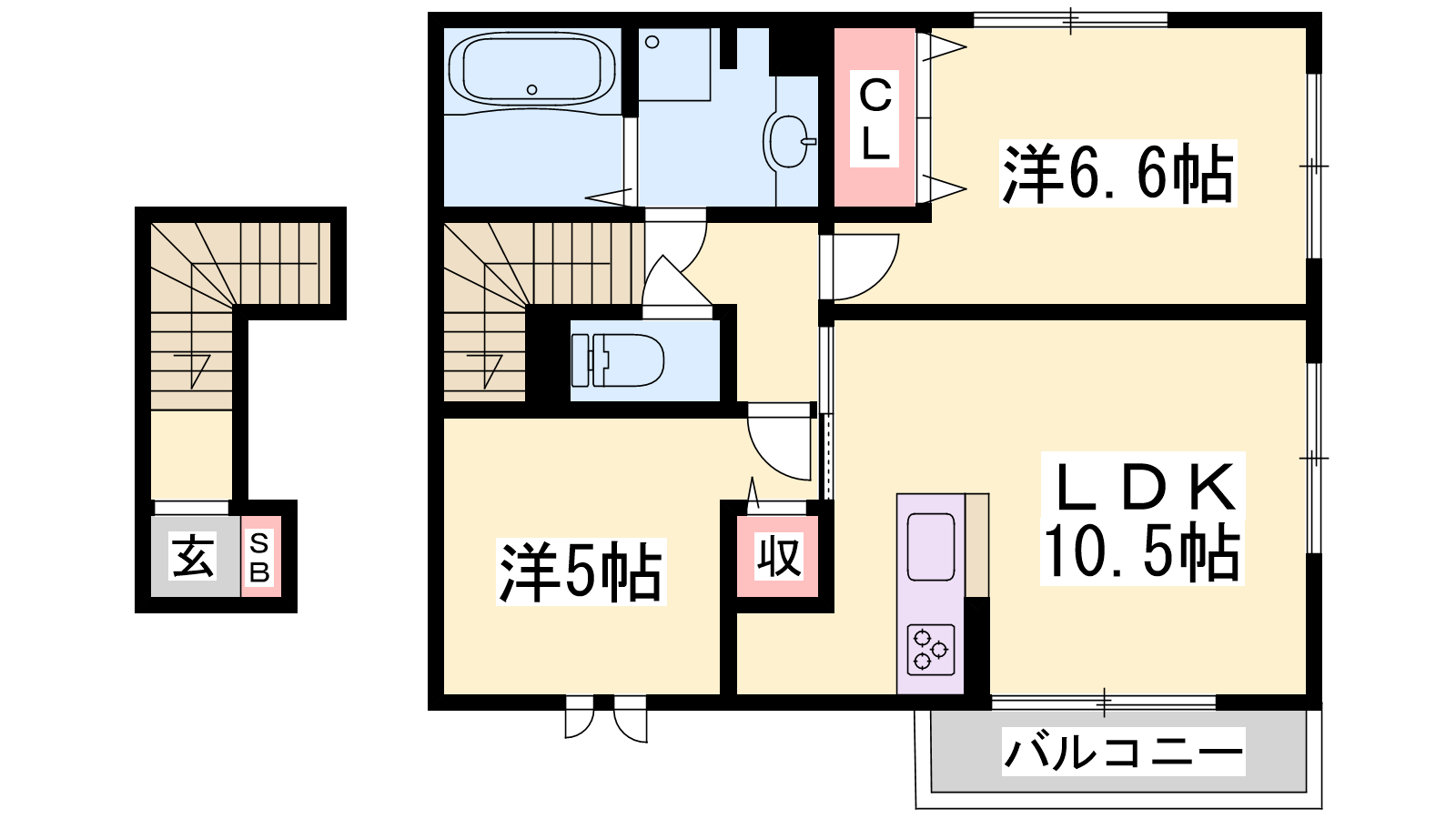 - LDK10.5帖、洋室6.6帖、洋室5帖