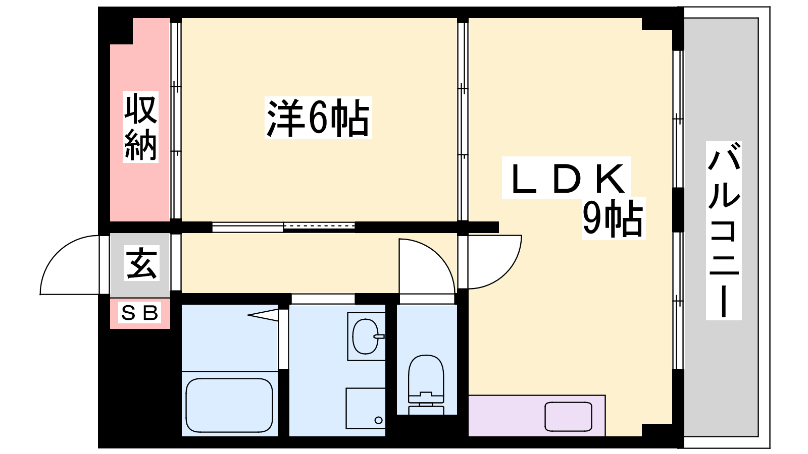 - LDK9帖、洋室6帖