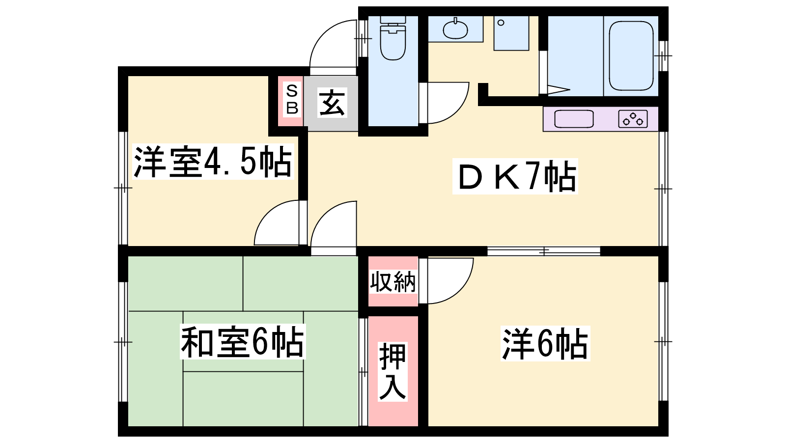 - DK7帖、洋室6帖、洋室4.5帖、和室6帖