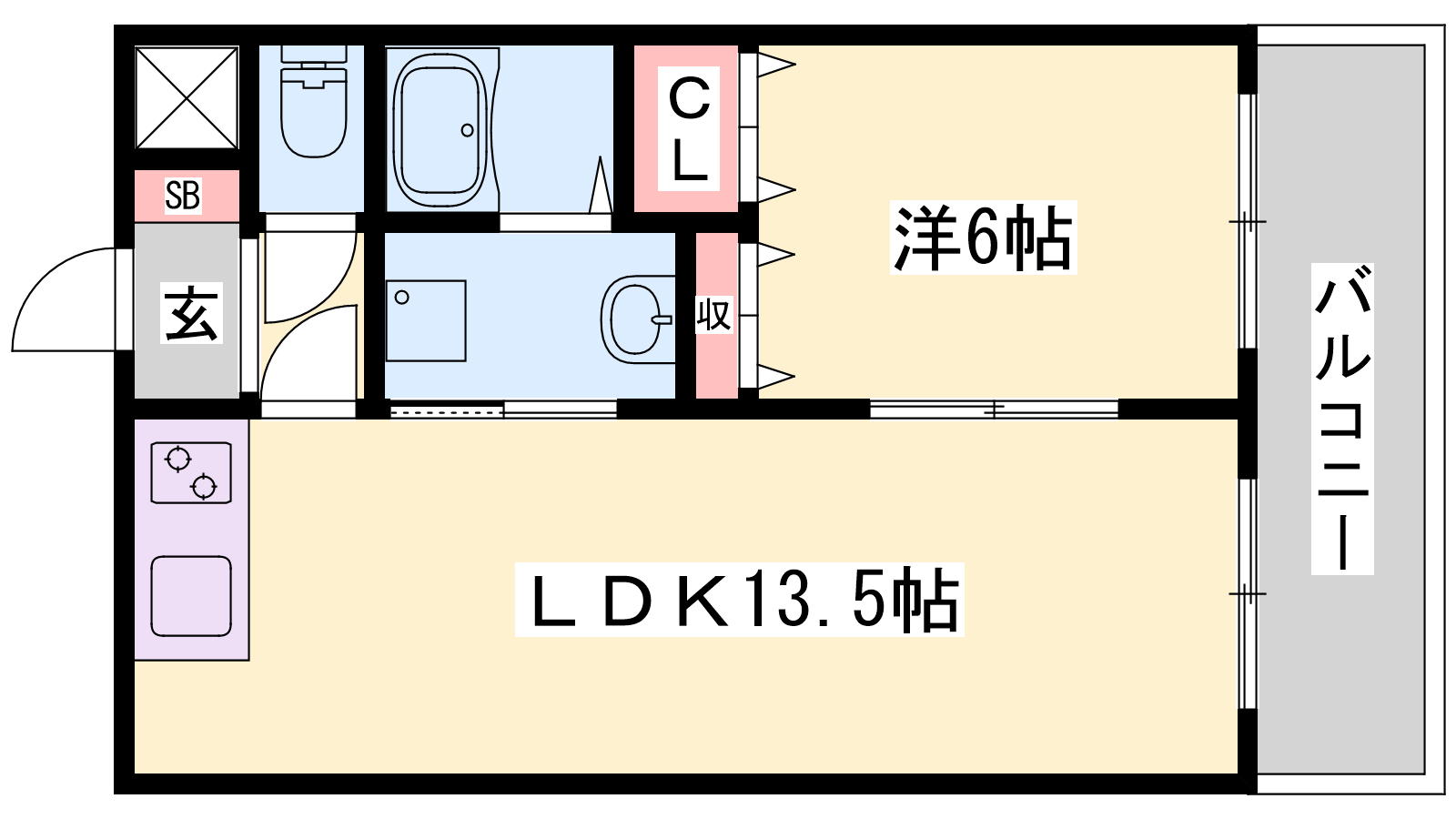 - LDK13.5帖、洋室6帖