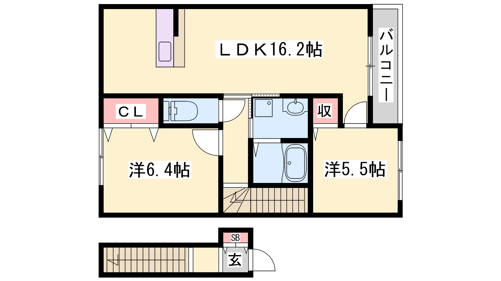 - LDK16.2帖、洋室6.4帖、洋室5.5帖