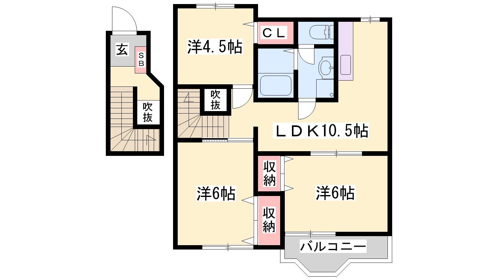- LDK10.5帖、洋室6帖、洋室6帖、洋室4.5帖