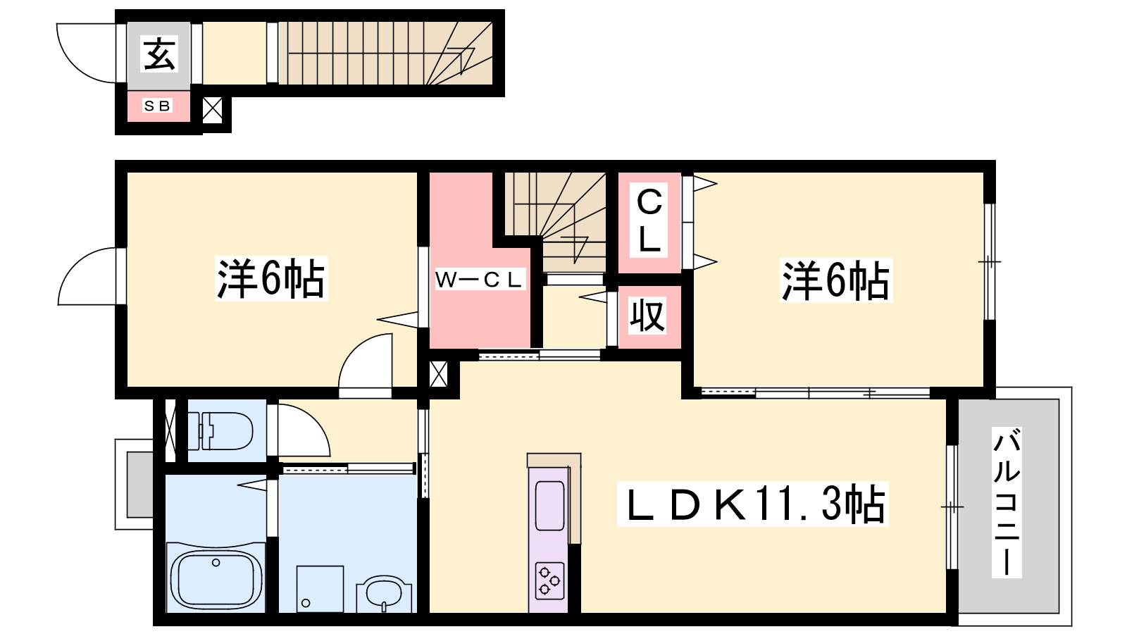 - LDK11.3帖、洋室6帖、洋室6帖