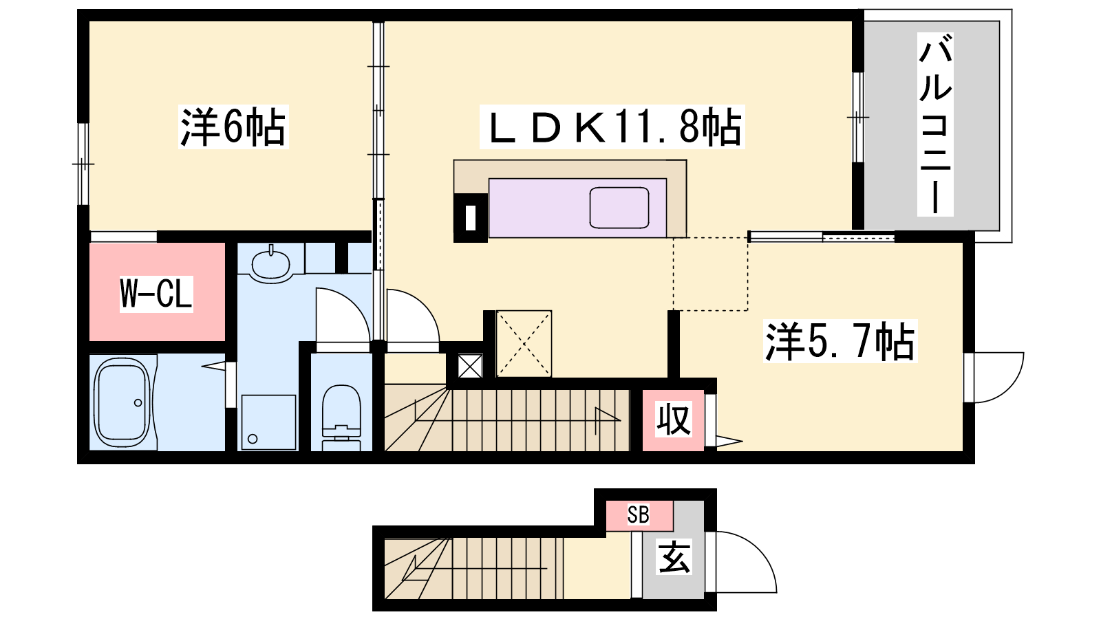 - LDK11.8帖、洋室6帖、洋室5.7帖
