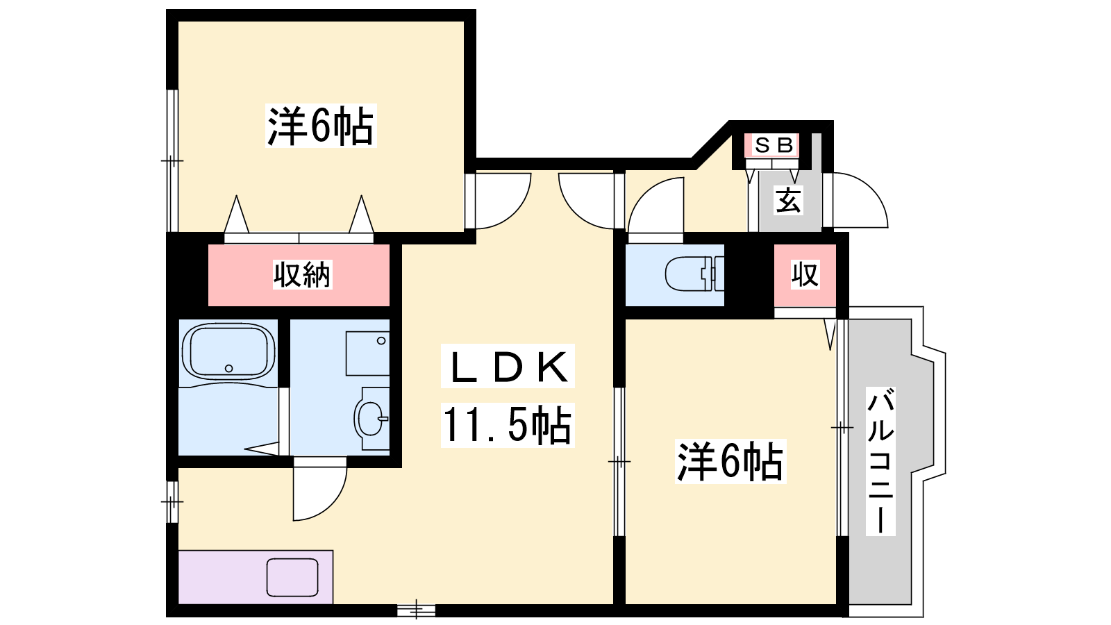 - LDK11.5帖、洋室6帖、洋室6帖