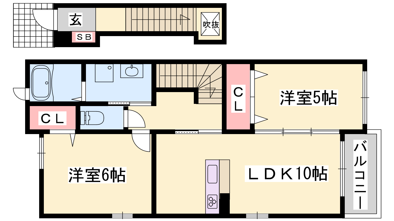 - LDK10帖、洋室6帖、洋室5帖