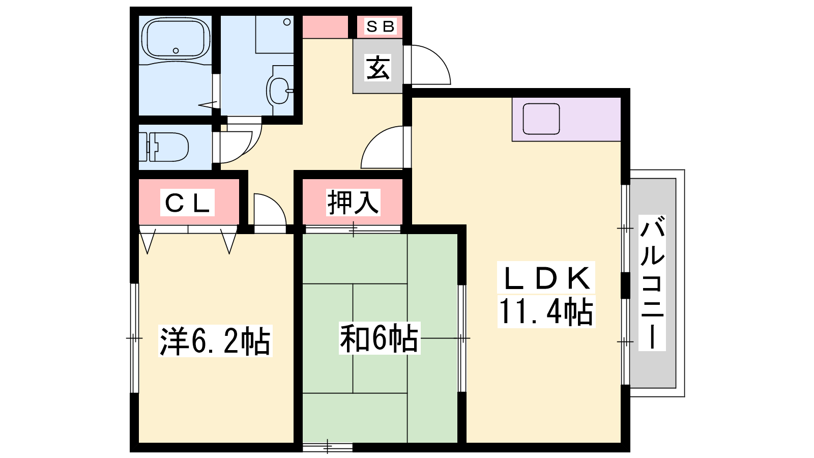 - LDK11.4帖、洋室6.2帖、和室6帖