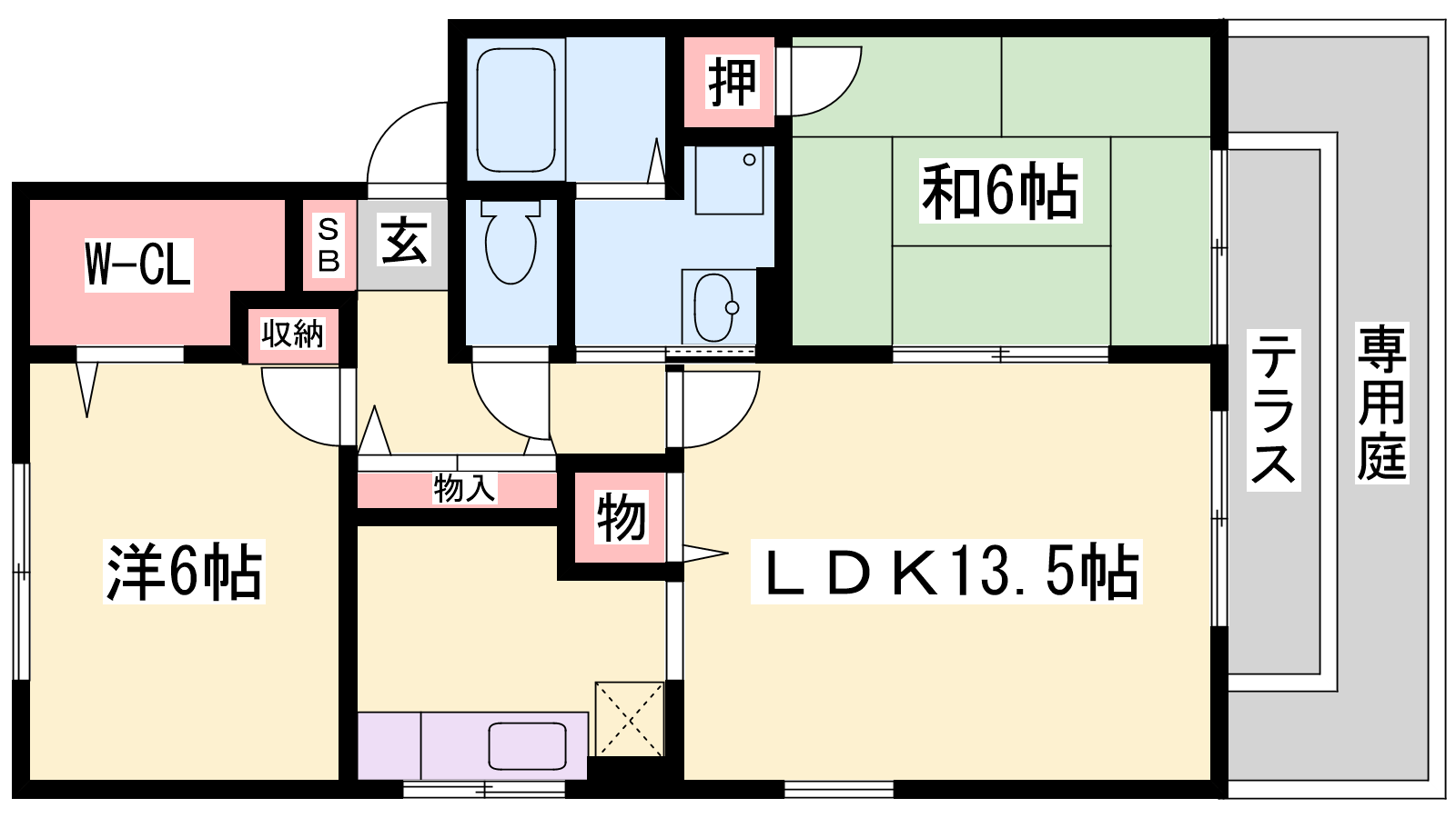 - LDK13.5帖、洋室6帖、和室6帖