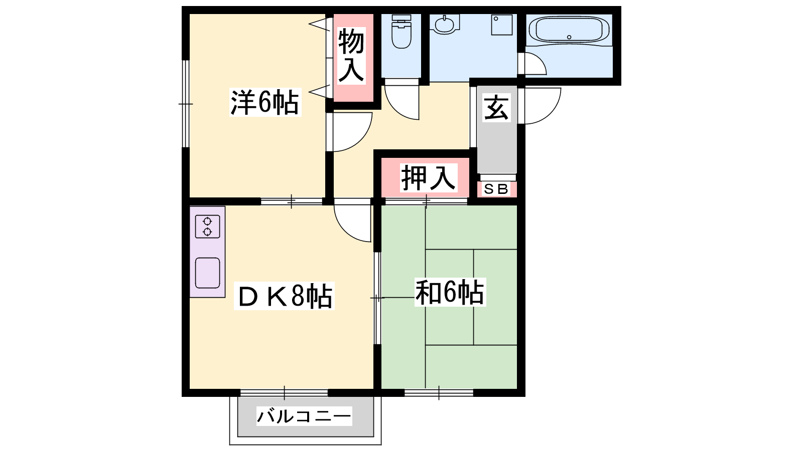 - DK8帖、洋室6帖、和室6帖