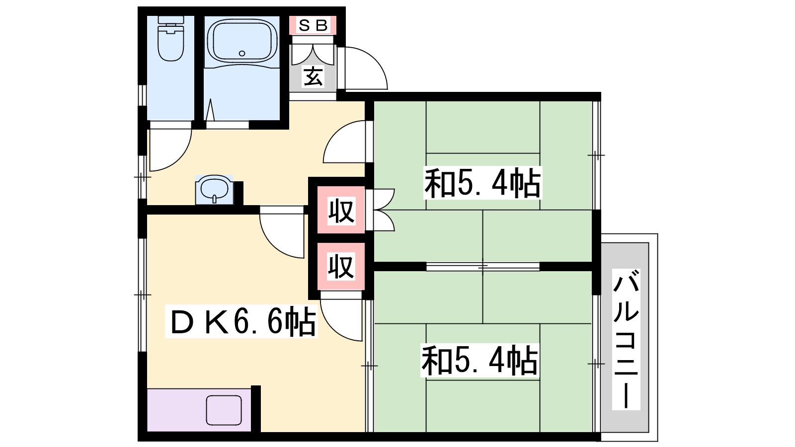 - DK6.6帖、和室5.4帖、和室5.4帖