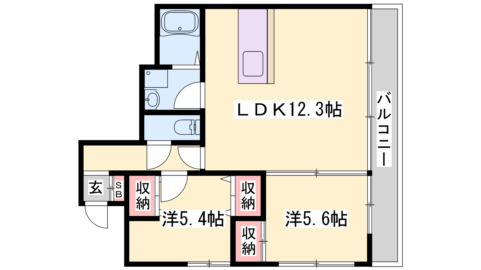 - DK12.3帖、洋室5.4帖、洋室5.6帖