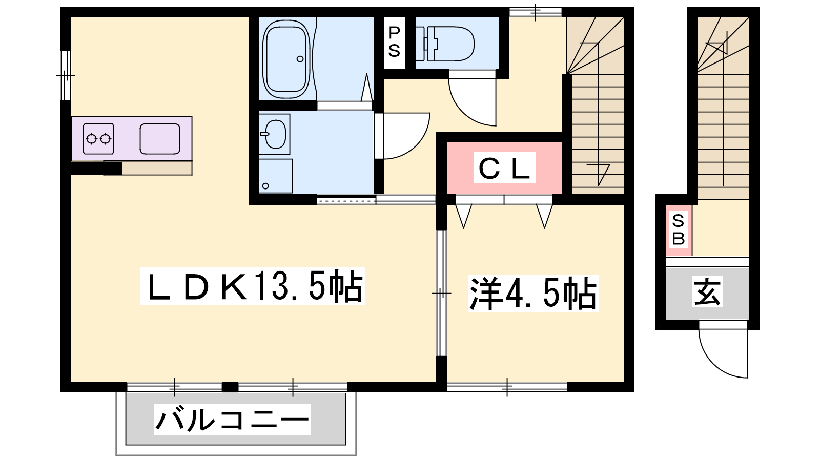 - LDK13.5帖、洋室4.5帖