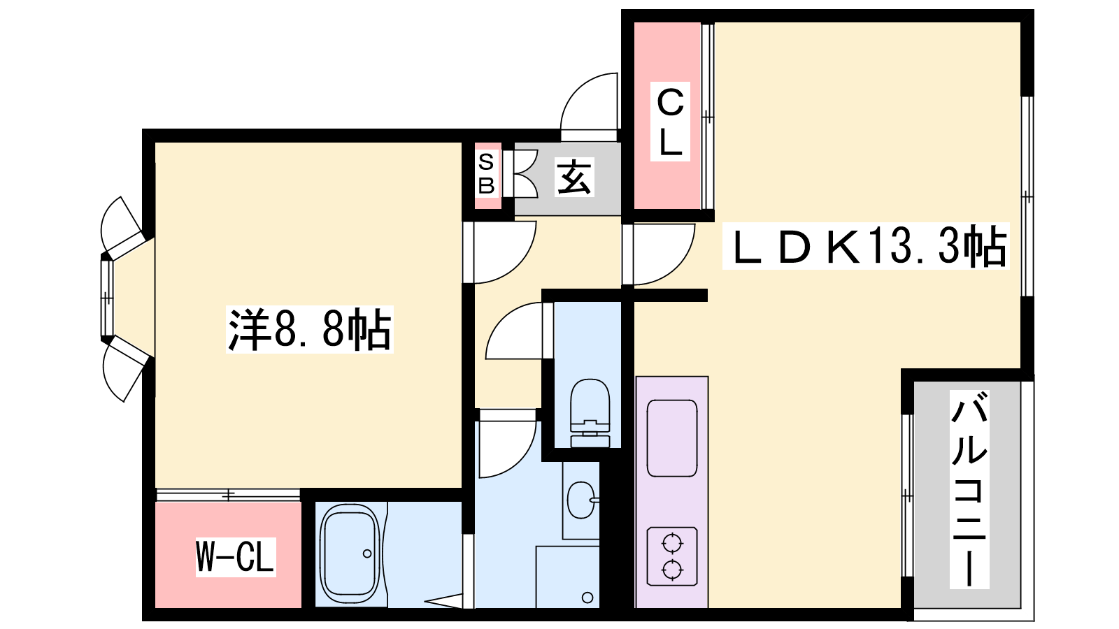 - LDK13.3帖、洋室8.8帖