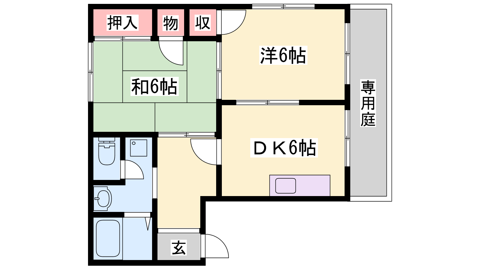 - DK6帖、洋室6帖、和室6帖