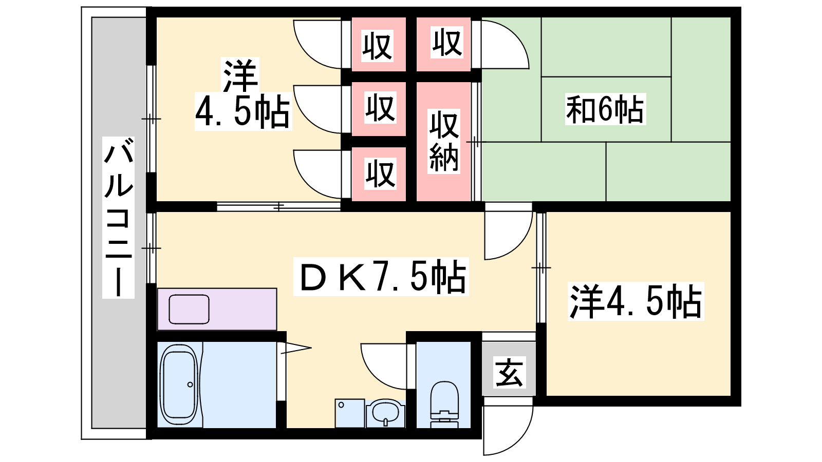 - DK7.5帖、和室6帖、洋室4.5帖、洋室4.5帖