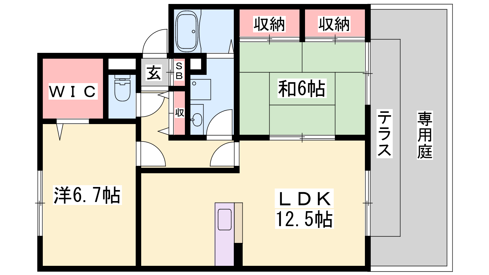 - LDK12.5帖、洋室6.7帖、和室6帖