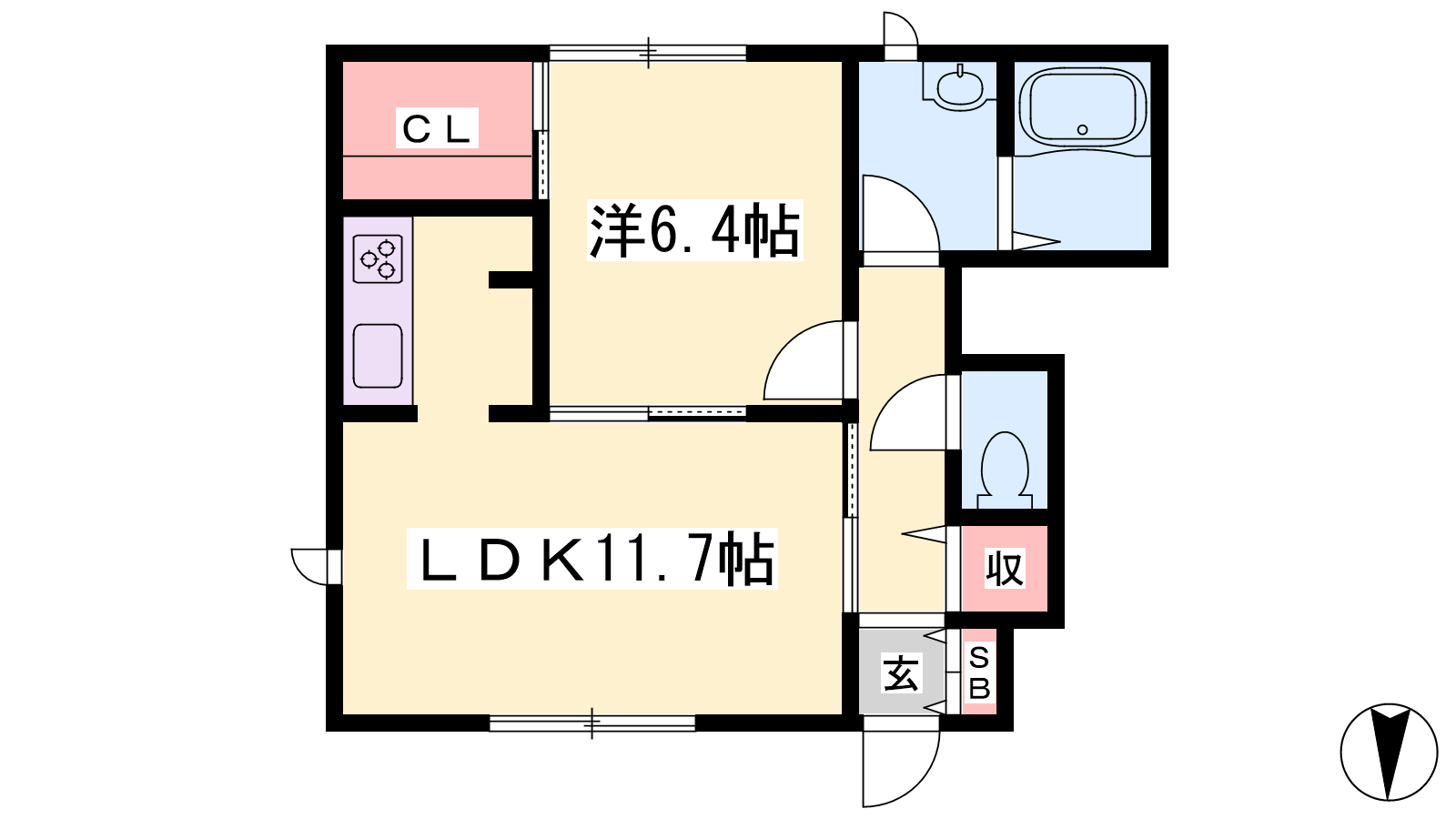 - LDK11.7帖、洋室6.4帖